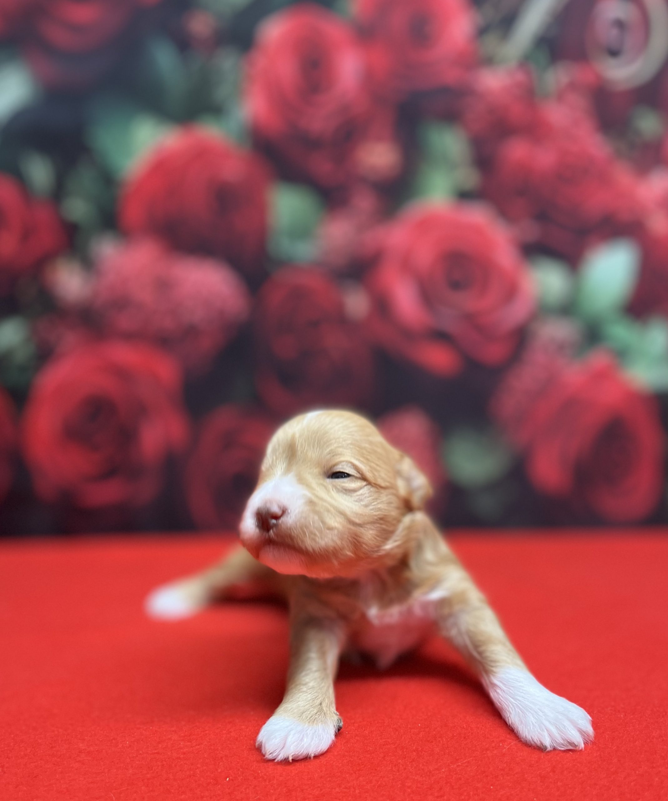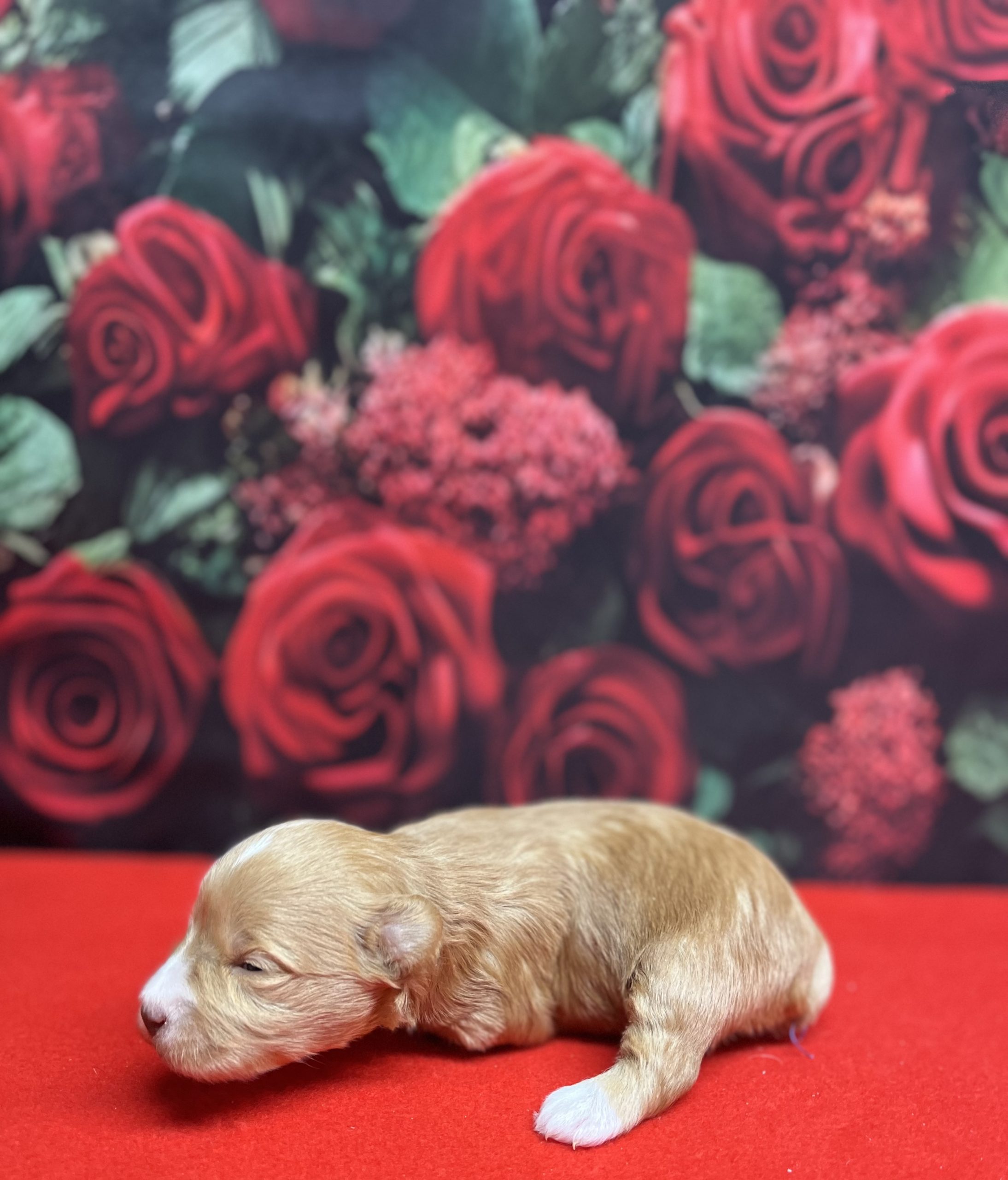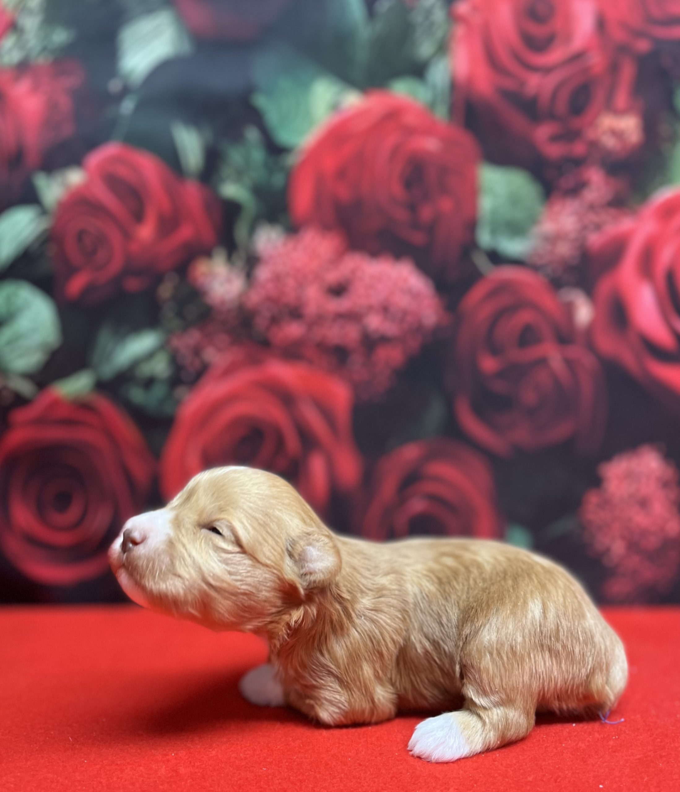 Puppy was born 1/31/2026! I have only one female puppy left. She is a gold yellow – her color is very rare.